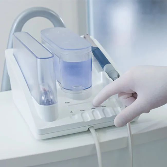 - Незаменим при работе на сложных участках – глубокие пародонтальные карманы, корни зубов, импланты.